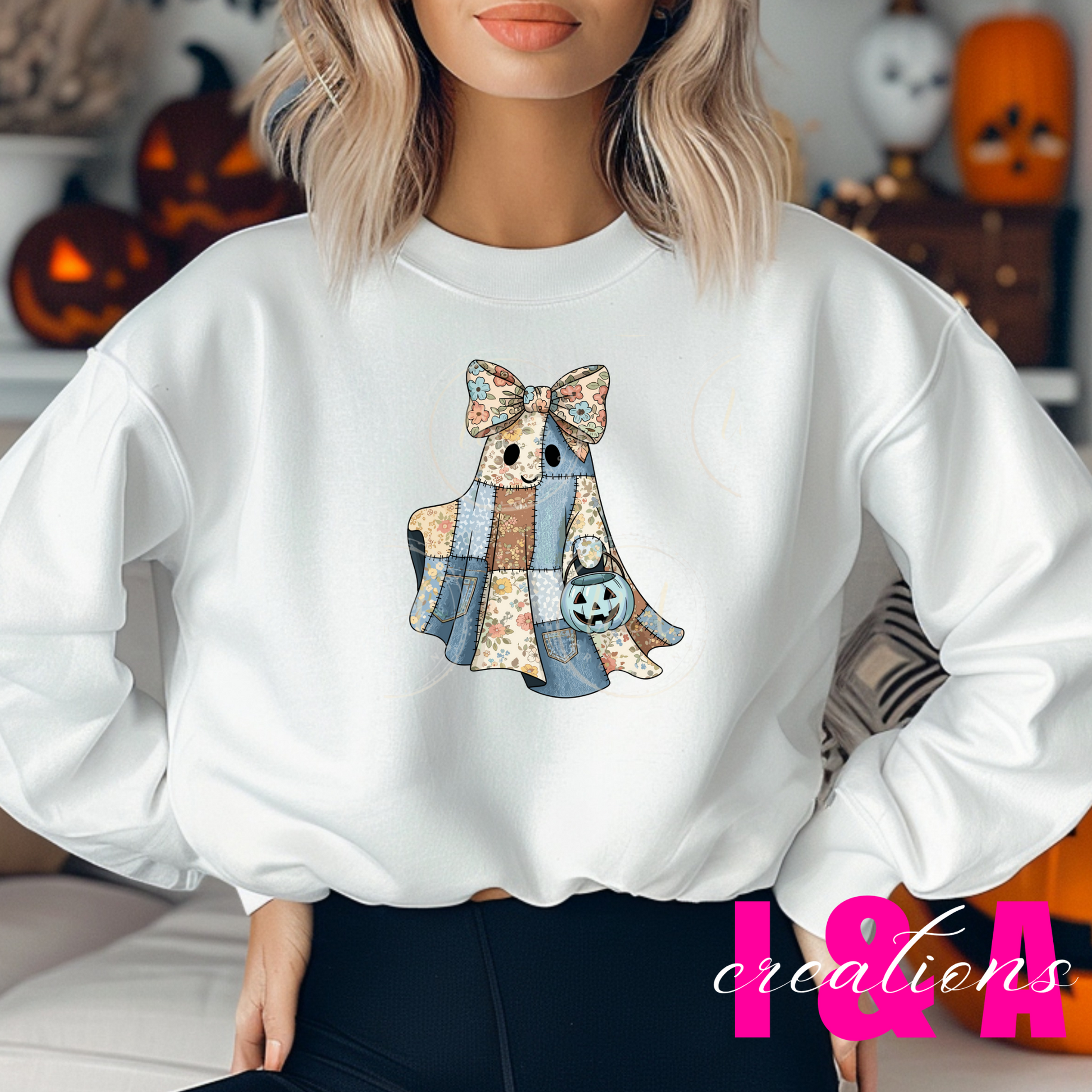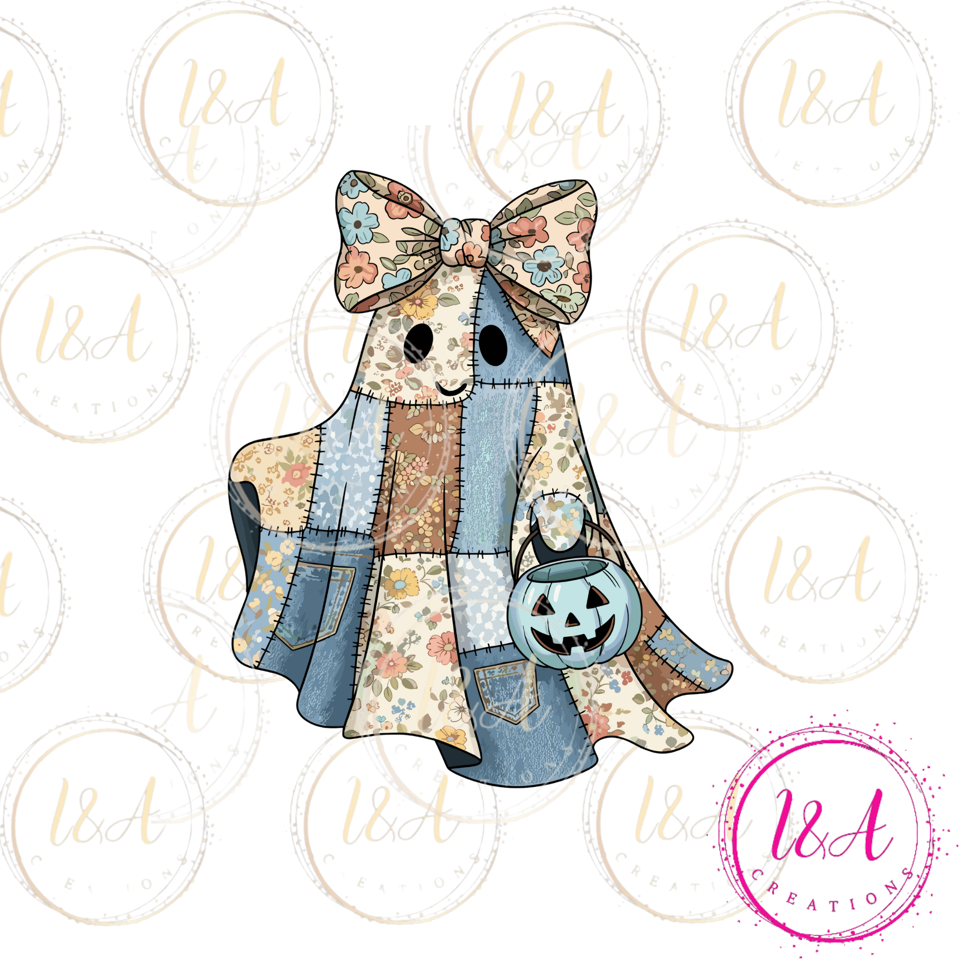 #117C Retro Halloween blue demin ghost