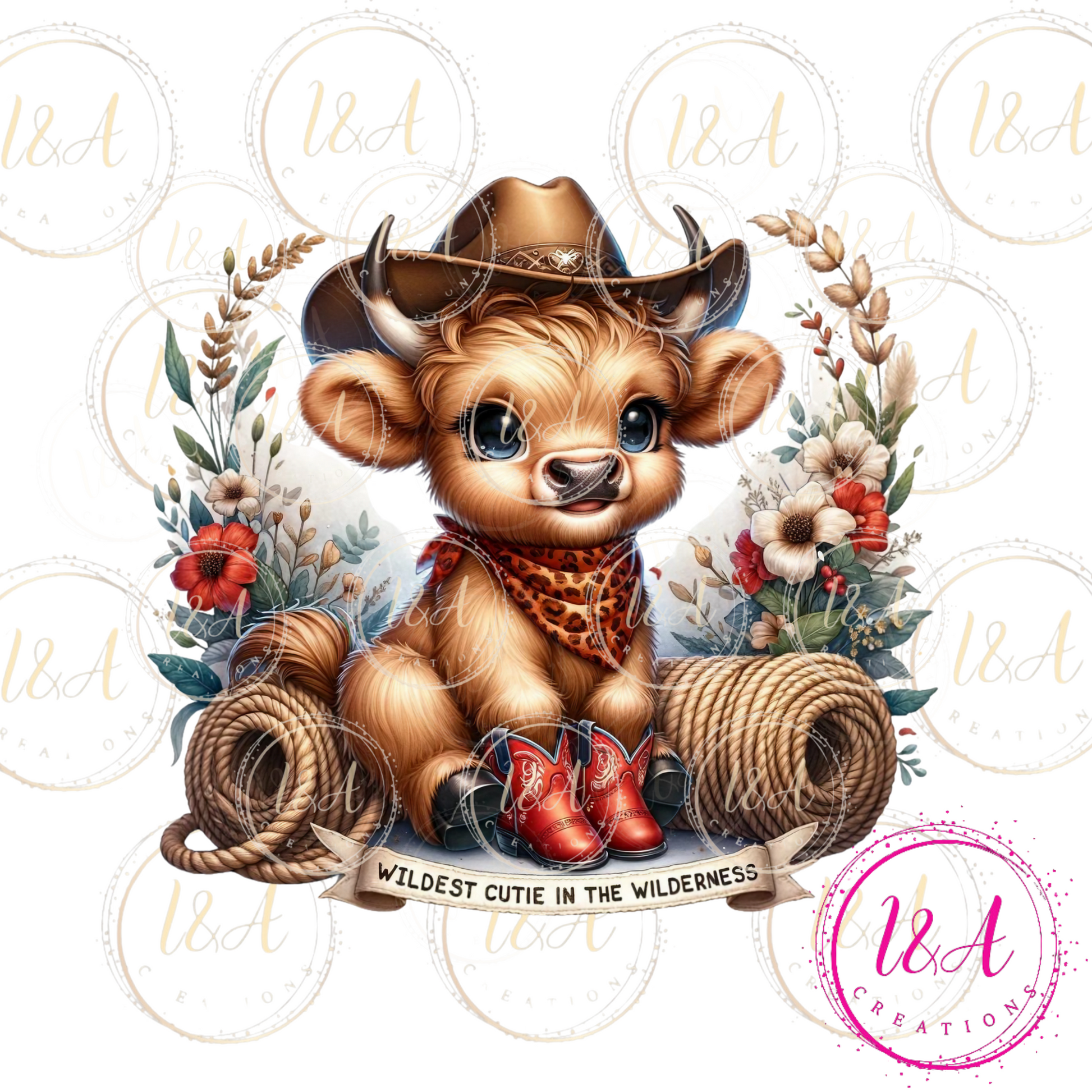 #553 Highland cow with red boots